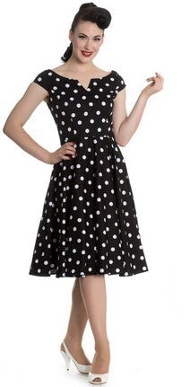 Das wunderschöne Nicky Kleid von Hell Bunny ist ein an den Stil der 1950er angelehntes Swingkleid in klassischem Polka Dot Design - perfekt für ein authentisches Vintage Outfit!